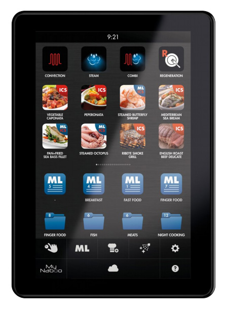 Безусловно уникальной характеристикой, отличающей Compact Naboo, является Cloud. В системе Cloud находится все необходимое для готового блюда: рецепты, процесс, система приготовления, программа приготовления, описание каждого отдельного блюда. Cloud Lainox предоставляет, подсказывает, настраивает все, что служит для достижения результатов высокого уровня качества и постоянства.