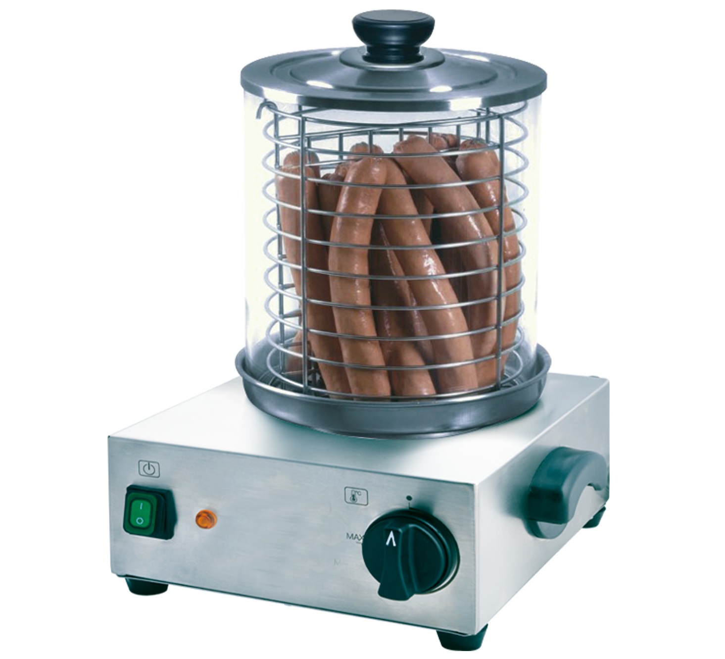 Нагревание и поддержание заданной температуры для сосисок происходит в паровой закрытой камере с крышкой.