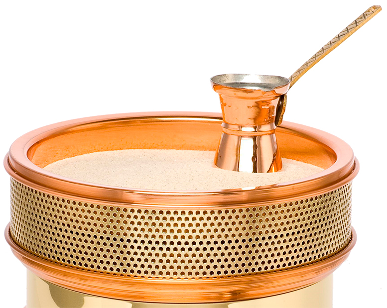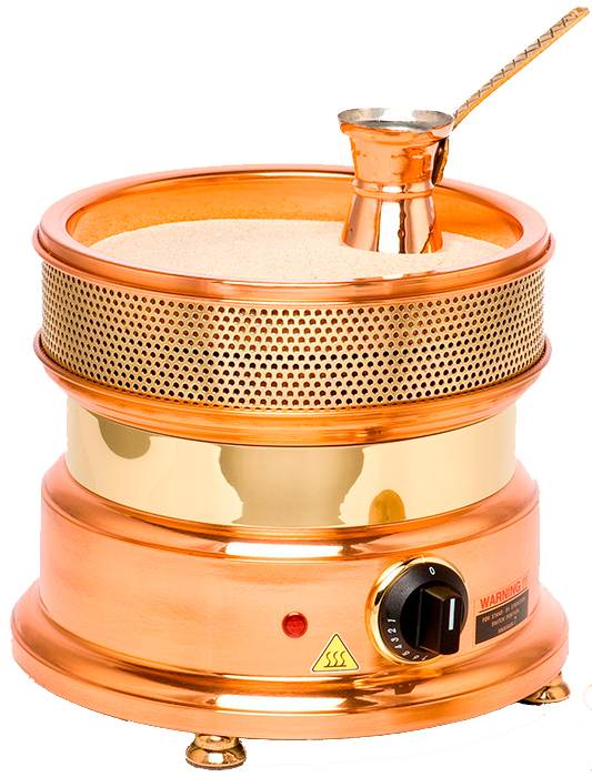После нагревания песка ТЭНами, в него устанавливают турки с кофе и варят в течение нескольких минут.