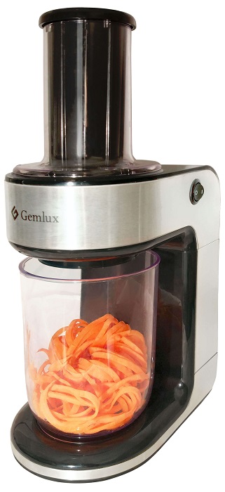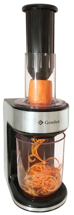 Аппарат для спиральной нарезки Gemlux GL-SR-1003 - это небольшой кухонный прибор в пластмассовом корпусе с накладками из нержавеющей стали, предназначенный для спиральной нарезки твердых овощей и фруктов. Его отличительные особенности - компактность, простота конструкции и невысокая цена.