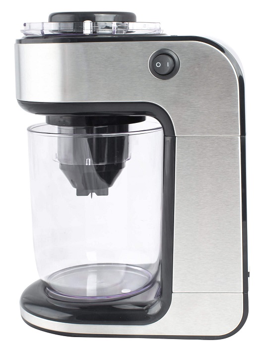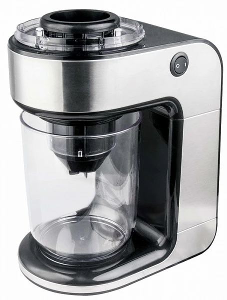 В комплект поставки входят три конуса для крупной, средней и мелкой нарезки (9, 5 и 3 мм соответственно), толкатель с фиксатором продукта и вместительный контейнер для готового продукта. Наличие электродвигателя позволяет нарезать овощи быстро, аккуратно и без особых усилий.