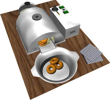 Начиная с момента загрузки теста, пончиковый аппарат производит самостоятельно все необходимые технологические операции.