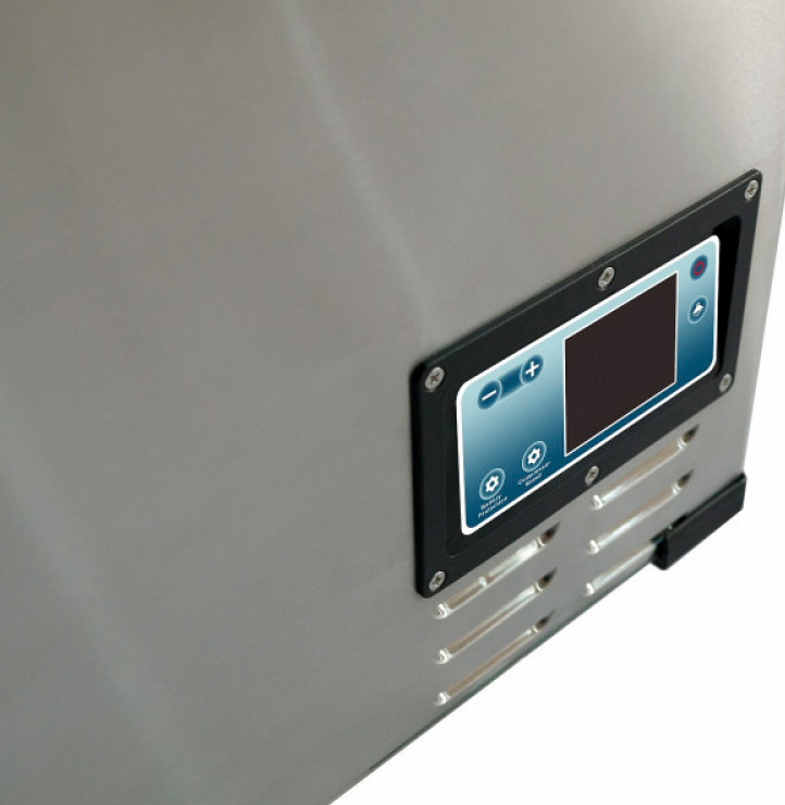 На корпусе расположена интуитивно-понятная панель управления с информативным дисплеем. С её помощью настраивается рабочая температура в диапазоне от +20 до -20 градусов, режим работы "MAX" (дает возможность максимально быстро заморозить содержимое) или "ECO" (устройство расходует меньше энергии, сохраняя свежесть продуктов), также есть возможность настроить уровень защиты от разрядки аккумулятора. Так же все настройки можно осуществлять в мобильном приложении.