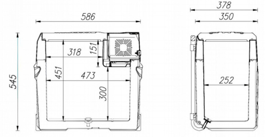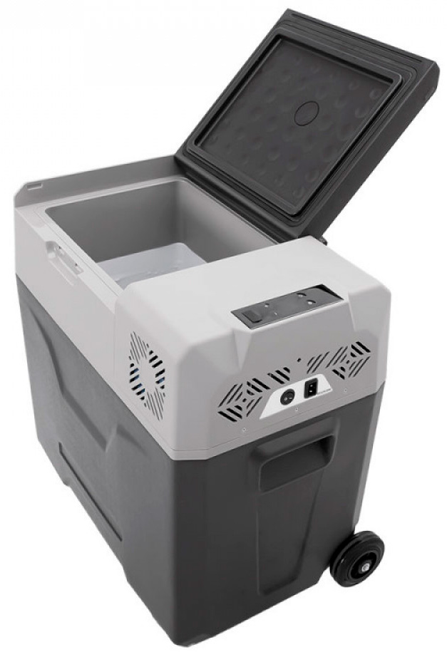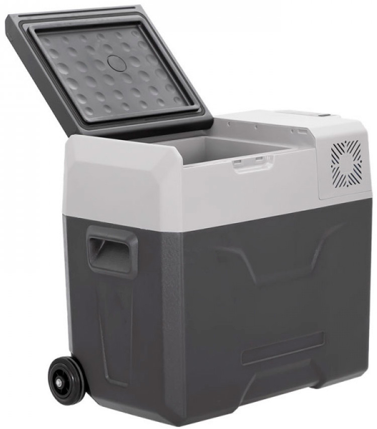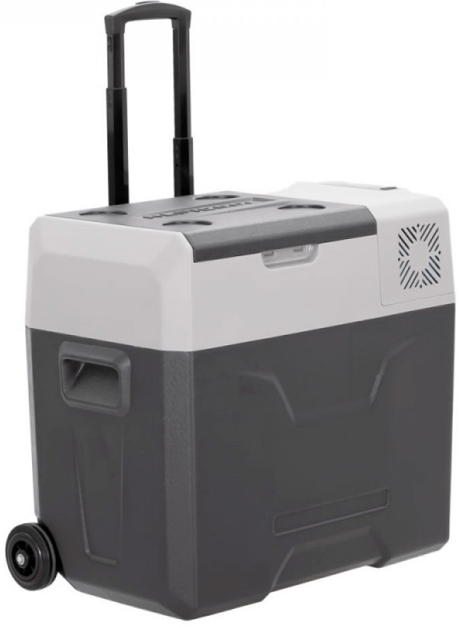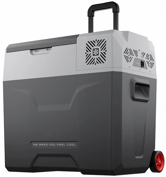 Холодильник состоит из качественного пластикового корпуса, обеспечивающего повышенную герметичность и высокие изотермические свойства. Холодильник оснащен защитой от разряда аккумулятора, функцией быстрой заморозки и охлаждения, экономичным режимом потребления энергии для поддержания температуры при длительном использовании от батарей. Автохолодильник оснащён специальной выдвижной ручкой и колёсами для удобного перемещения вне транспортного средства.