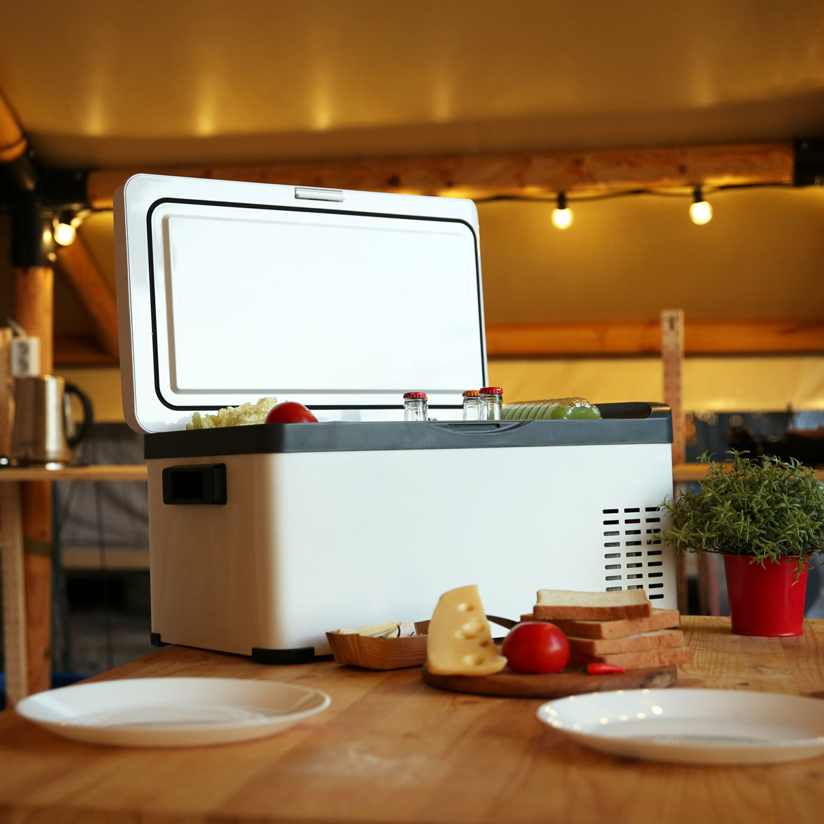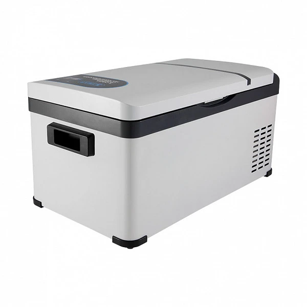 Компрессорный автомобильный холодильник с классическим форм-фактором.