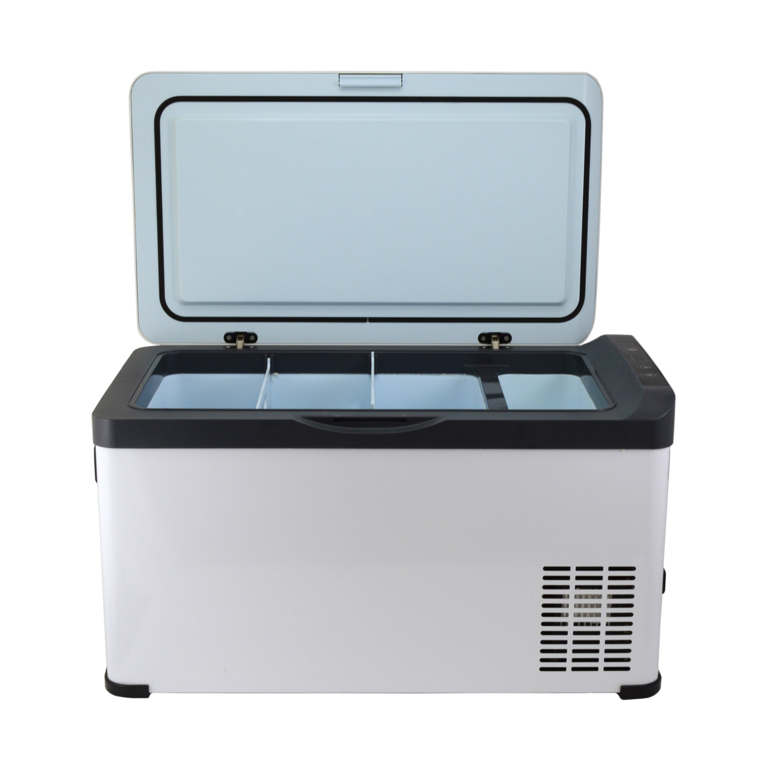 Как и все компрессорные холодильники Libhof, K-26 имеет сенсорную панель управления, память настроек, трёхуровневую защиту от разряда аккумулятора.