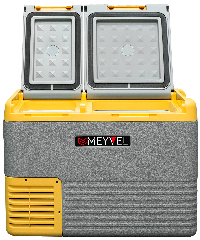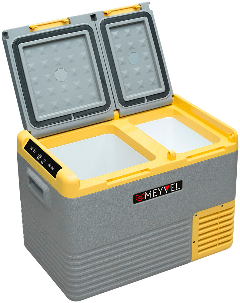 Автохолодильник переносной Meyvel AF-K45D отлично подойдет для транспортировки и хранения любимых продуктов и напитков. Эта модель подходит для установки не только в легковые автомобили, но и в грузовые, а так же микроавтобусы, катера, автодома и кемперы. Питание осуществляется от прикуривателя (12 или 24 В). Автохолодильник разделён на морозильную и холодильную камеры. Для удобного перемещения автохолодильник оснащён утопленными ручками, такой тип ручек практически не выпирает и не требует лишнего места в Вашем транспортном средстве. Крышки холодильника можно перенавешивать для комфортного варианта открытия. Корпус изготовлен из ударопрочного пластика, который легко переживёт тряску во время езды по внедорожью или случайные удары корпуса