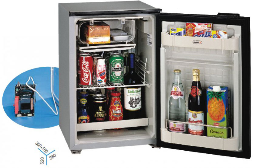 Данная модель холодильного оборудования, итальянского производства является образцом качества и надежности. Холодильник оснащен удобной дверцей, что делает модель удобной и практичной. Установка холодильника подразумевает возможность монтировать компрессор, который, кстати, является вентилируемым, на расстоянии 1,5 метра от самого холодильника. Помимо этого данная модель холодильника оснащена морозильной камерой и специальным аккумулятором холода, который является встроенным. Благодаря присутствующей системе защите от перепадов напряжения, данную модель холодильного оборудования можно устанавливать не только в легковом и грузовом автомобильном транспорте, но и на яхтах, катерах и даже дома. Так, если происходит скачек напряжения, защитная система автоматически отключает холодильник от сети. Данный холодильник является довольно вместительным оборудованием, его холодильная камера имеет объем 42 литра, что достаточно для того, чтобы обеспечить продуктами питания нескольких человек, на продолжительный период времени. При этом поддержание необходимой температуры осуществляется при помощи встроенного аккумулятора холода. Этот тип холодильного оборудования очень экономичен в энергопотреблении и способен прослужить длительный срок.