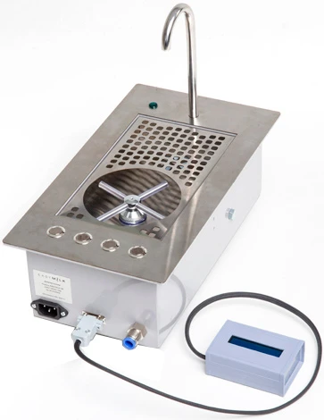 Принцип работы: дозатор подает охлажденное молоко из холодильного устройства в питчер. Это позволяет добиться стабильной температуры молока, которая влияет на качество приготовления напитка.