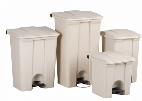 Оснащен крышкой и управляемой педалью.