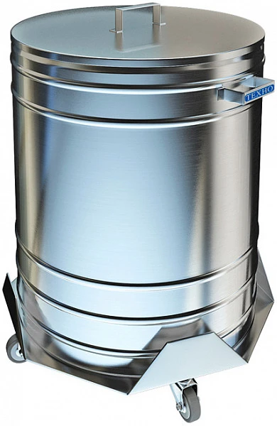 Тележка для сбора отходов, сварная, с баком из нержавеющей стали AISI 304, имеет каркас из нержавеющей стали AISI 430.