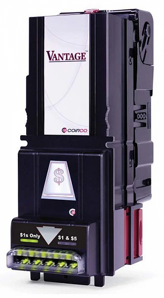 Банкнотоприёмник Coinco Vantage используется совместно с торговыми автоматами. Высокая скорость приема и распознавания банкнот, а также повышенная влаго- и вандалозащищитные свойства платежной системы Coinco.