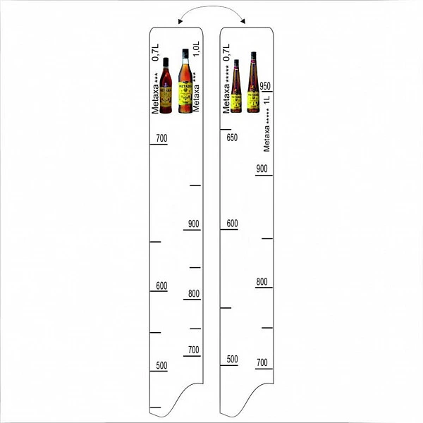 Барная линейка P.L. Proff Cuisine Metaxa 3/5 (700мл/1л) используется для снятия остатков начатых бутылок с алкоголем и топингами, чтобы не прибегать к переливанию их в мерные ёмкости.