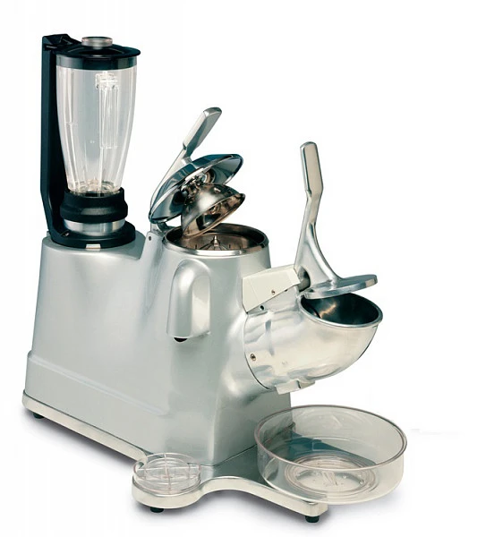 Барный комбайн Vema GR 2014/E совмещает следующие функции: измельчитель льда, соковыжималка для цитрусовых, блендер, миксер для молочных коктейлей.