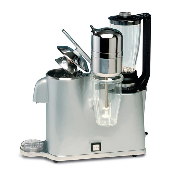 Барный комбайн Vema GR 2021/E совмещает следующие функции: соковыжималка для цитрусовых, блендер и миксер для молочных коктейлей.