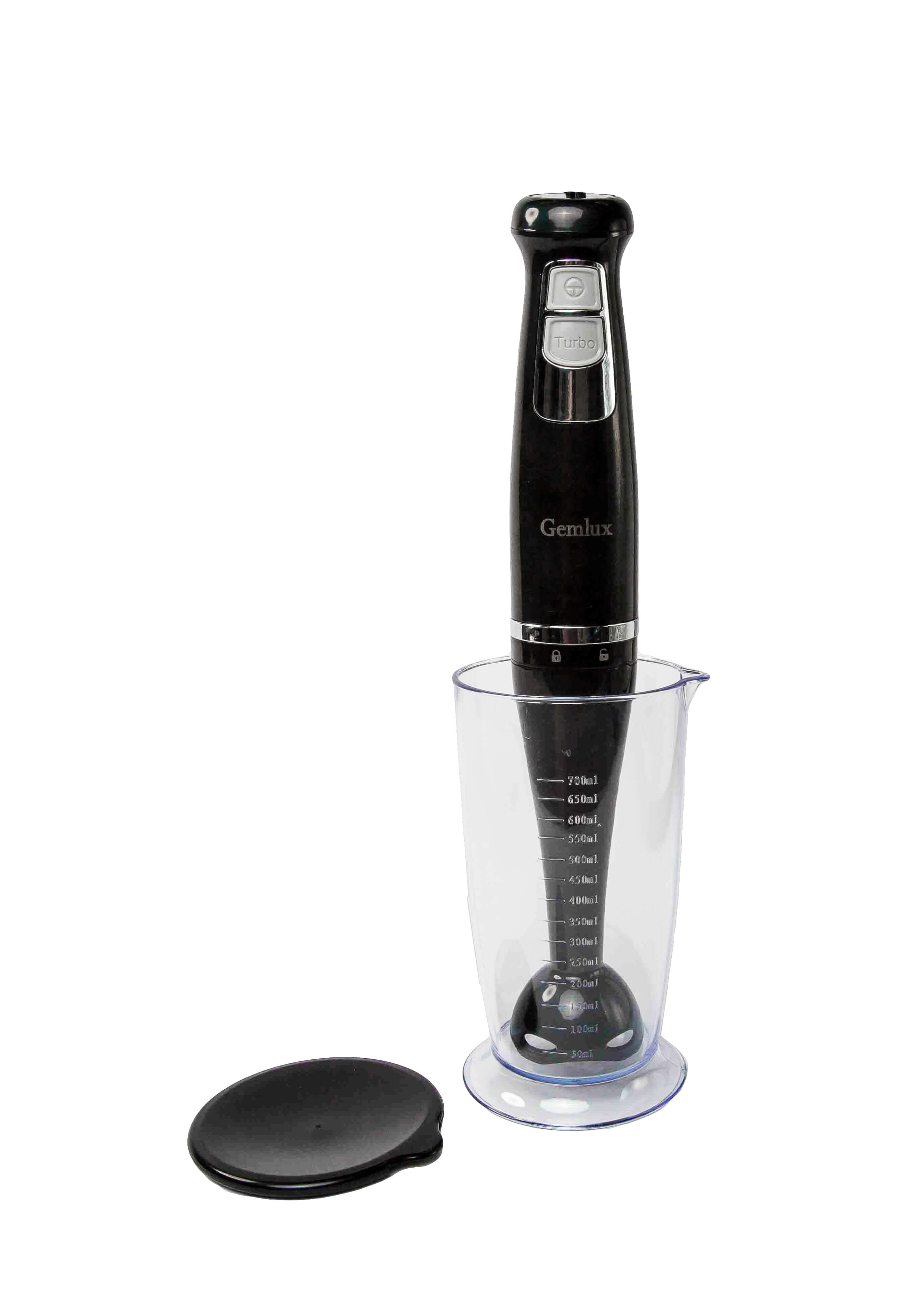 - в комплекте: съемная насадка с 2-лопастным ножом из нерж.стали, мерный стакан объемом 700 мл с крышкой
