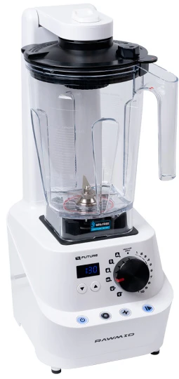 Вакуумный блендер обладает высокой мощностью до 2900 Вт и скоростью вращения лезвий до 28 000 оборотов в минуту. Его главной особенностью является наличие функции вакуума. Встроенный в крышку кувшина вакууматор создаёт давление в чаше 75 кПа. Измельчение в вакуумной среде способствует меньшему окислению продуктов, и как следствие — лучшему сохранению витаминов и антиоксидантов. Кроме того, приготовленный в вакууме смузи обладает более ярким и насыщенным цветом и вкусом.