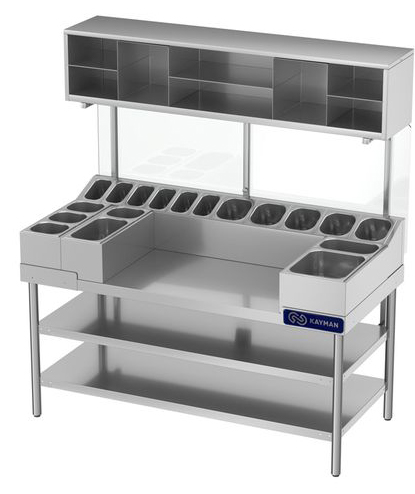 На столешнице размещены легкосъемные холдеры для гастроемкостей.