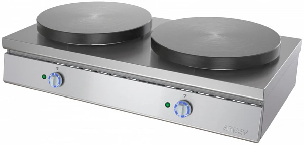 Блинница электрическая Atesy Масленица БА-2-400-02 используется на предприятиях общественного питания и торговли для быстрого выпекания традиционных русских блинчиков круглой формы и может устанавливаться в небольших кафе, бистро, ресторанах.