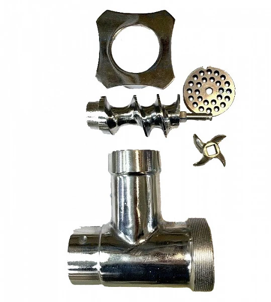 Горловина, шнек, нож, вал, решетка, зажимная гайка.