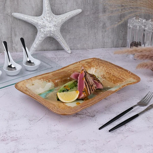 Блюдо для подачи P.L. Proff Cuisine 31*21,5 см h4,8 см 600 мл Light Brown Spots Sea Wave Frutti di Mare (81241268) предназначено для профессионального использования в ресторанах, кафе, барах, на предприятиях общественного питания и торговли и т.д.