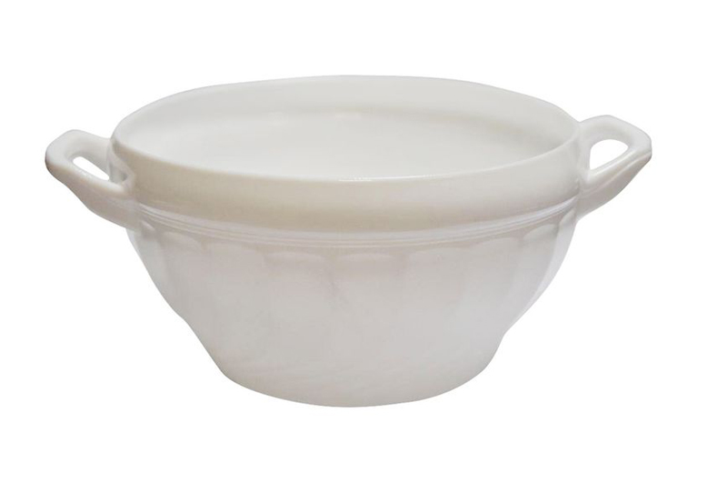 Бульонница Arcoroc Arcopal Trianon 500 мл используется при обслуживании банкетов, подачи горячих первых блюд на несколько персон. Для удобства эксплуатации глубокая емкость снабжена парными ручками средней толщины. Молочно-белая стеклокерамика не царапается в процессе эксплуатации, отличается устойчивостью к появлению трещин и сколов.