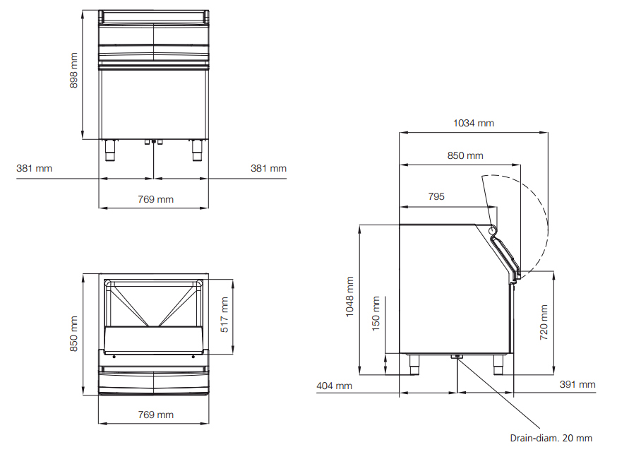 Бункер Simag R150 для льда предназначен для льдогенераторов SV 145/205/225/325/395/545, SPN 125/255/405/605.
