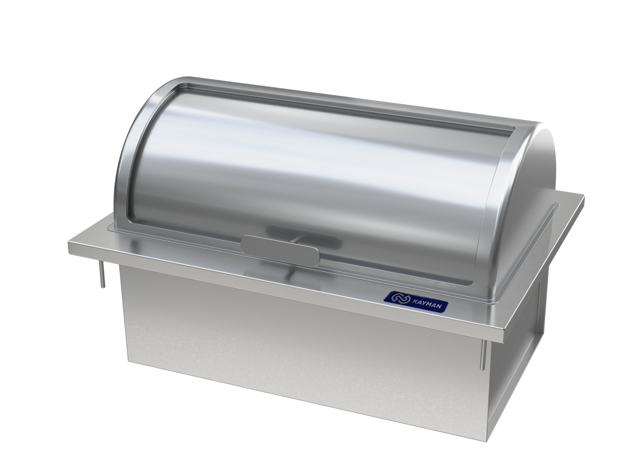 Шарнирный механизм крышки позволяет откидывать ее вверх, предоставляя клиенту доступ к содержимому гастроемкости.