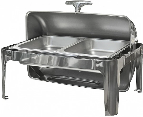 Чафиндиш Ergo FQ-CD-190-2 с роликовой крышкой используется для подогрева блюд на линиях раздачи в заведениях питания, а также для кейтеринга и шведского стола.