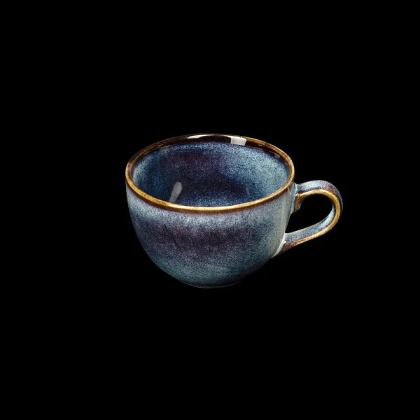 Чашка чайная Corone Celeste 240мл, синий – цветной дизайнерский фарфор, покрытый эффектарными глазурями, которые смешиваются и наносятся вручную, из-за чего каждое изделие имеет индивидуальный уникальный декор и оттенок. Вариации переходов окраски, наплывы цвета друг на друга являются особенными элементами декора. Оттенок изделий может варьироваться от нежно-голубого до индиго. В производстве некоторых изделий также используется глазурь с эффектом «кракле» – искусственным состариванием поверхности с образованием тонкой паутинки мелких трещинок.