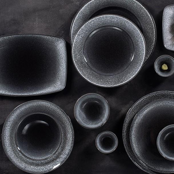 Посуда этой коллекции темно-серого цвета с эффектом сумерек – темные цвета постепенно переходят в более светлый оттенок – словно звезды на темном небе. Современный стильный дизайн и природные оттенки глазури олицетворяют простоту и гармонию баланса.