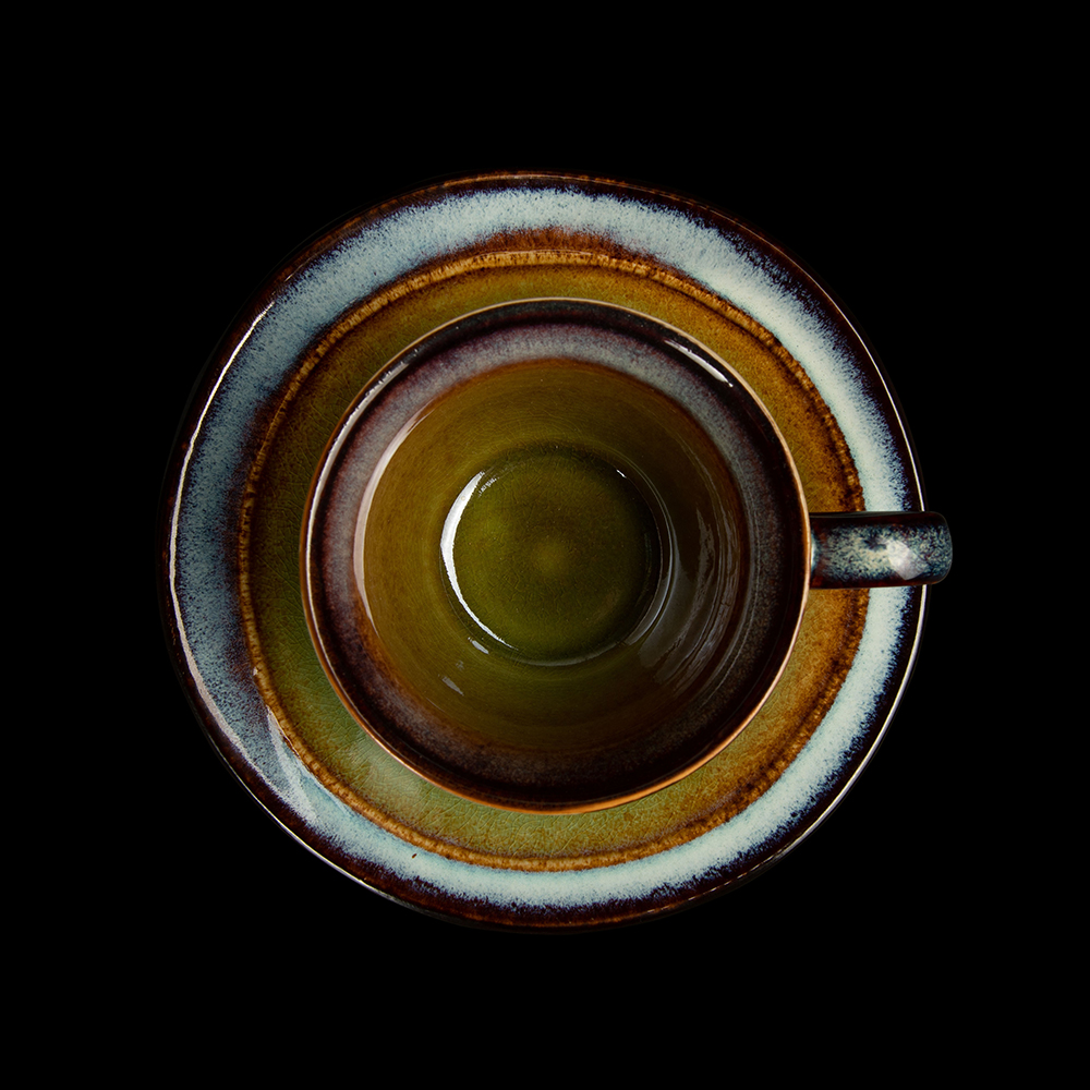 Серия Corone Verde – уникальная серия фарфора оригинальных форм, квинтэссенция океана на Вашем столе. Основная цветовая гамма – изумрудный зеленый, который может плавно переходить в янтарный, медовый, коричневый оттенки, дополнена акцентами всех оттенков синего, от нежно-голубого до индиго. Второй особенностью этой серии является использование глазури с эффектом «кракле» – искусственным состариванием поверхности с образованием тонкой паутинки мелких трещинок.