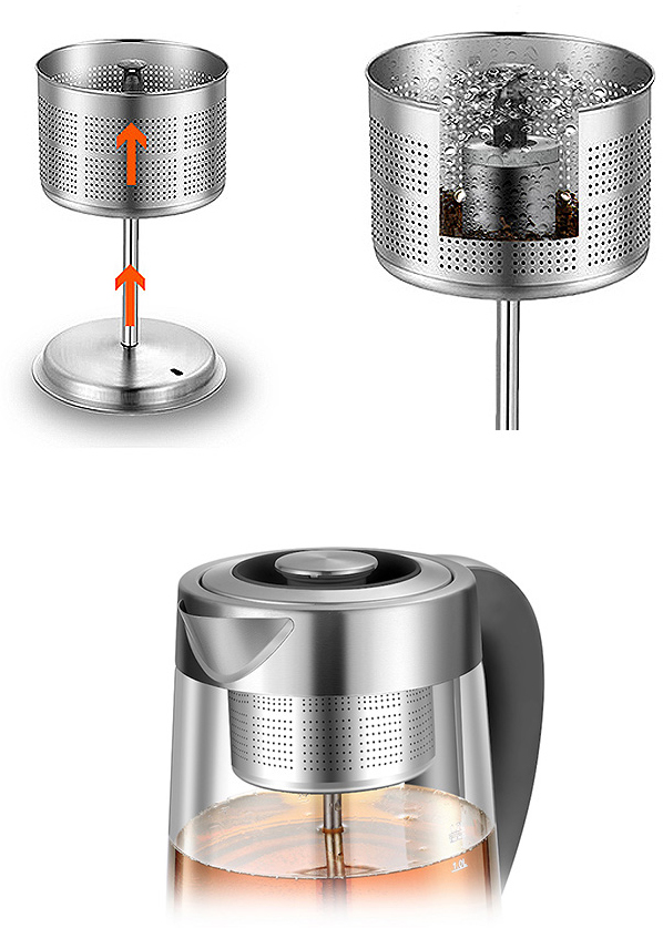 • В комплект входит контейнер-ситечко для заваривания чая таких сортов, которые необходимо готовить при высокой температуре. Обваривая чайный лист, пар помогает чаю максимально раскрыть свой вкус и аромат.