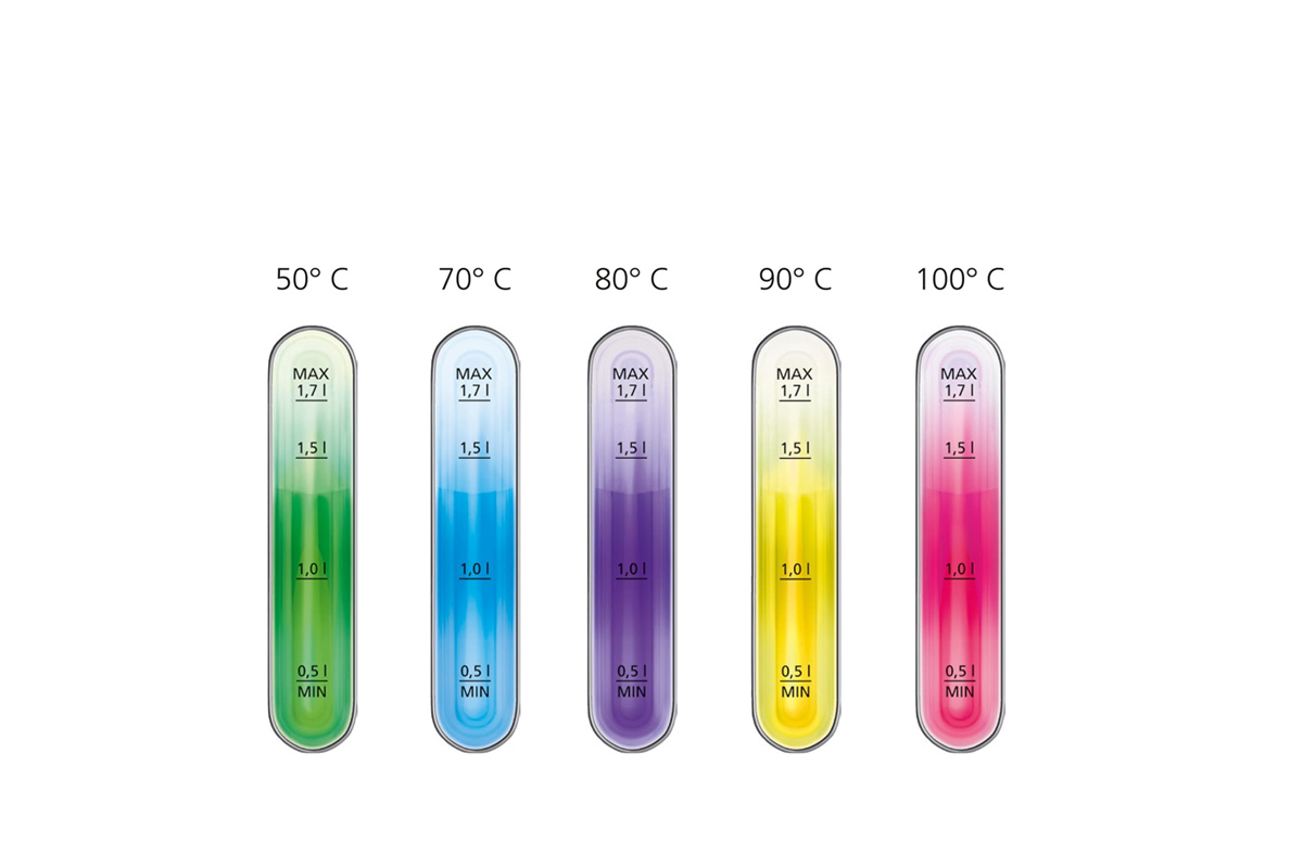 Выбор температуры нагрева: 50, 70, 80, 90, 100°C