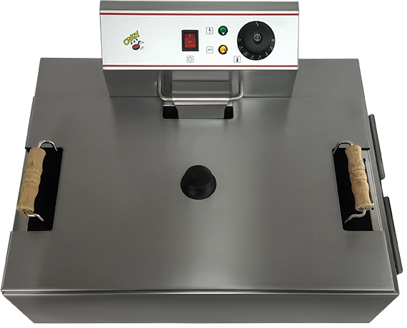 Данная чебуречница позволяет легко обжаривать изделия партиями, благодаря загрузке с помощью объемной корзины.