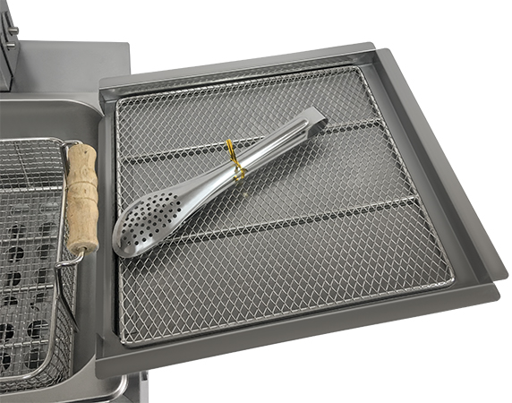 Комплектация 1 боковой поддон с решеткой, корзина, щипцы, крышка
