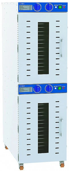 Дегидратор сушилка Abat ШС-32-2В позволяет в промышленных объемах сушить травы, зелень, фрукты, овощи, ягоды, орехи, грибы, макаронные изделия, а также готовить пастилу, йогурт, вяленое мясо и рыбу, основы для сыроедческих пицц, тортов, пирогов и другие сыроедческие блюда (фруктовые чипсы, хлебцы, козинаки, конфеты, печенье и пирожные) на предприятиях общественного питания и торговли, а также на фермах и сельскохозяйственных предприятиях.
