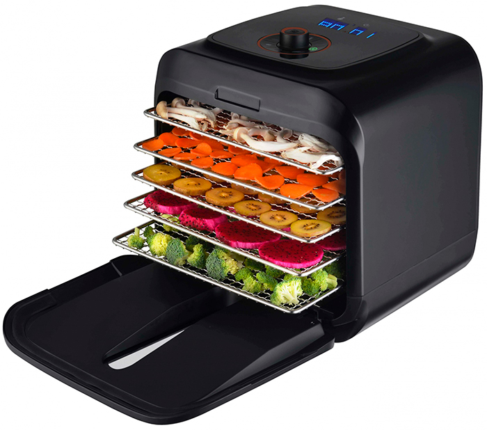 Дегидратор сушилка Gemlux GL-IR500 позволяет сушить травы, зелень, фрукты, овощи, ягоды, орехи, грибы, макаронные изделия, а также готовить пастилу, йогурт, вяленое мясо и рыбу, основы для сыроедческих пицц, тортов, пирогов и другие сыроедческие блюда (фруктовые чипсы, хлебцы, козинаки, конфеты, печенье и пирожные) на предприятиях общественного питания и торговли, а также на фермах и сельскохозяйственных предприятиях. Если устройство нагреется до температуры, превышающей максимальный показатель, произойдет автоматическое отключение в целях защиты от перегрева.