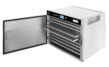 Поток воздуха регулируется между десятью различными скоростями в зависимости от температуры камеры и продукта, который должен быть обезвожен.
