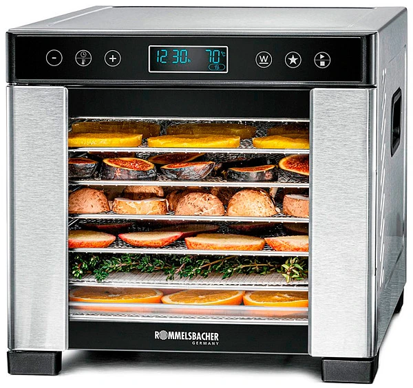 Дегидратор сушилка Rommelsbacher DA 650 предназначена для сушки различных продуктов: овощей, фруктов, ягод, грибов, зелени. Также используется для приготовления пастилы, хлебцев, сушеного мяса и рыбы.