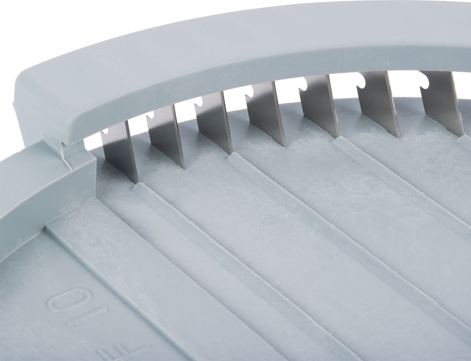 "Mineral+" - новый тип обработки поверхности дисков обеспечивает оптимальную защиту поверхности диска и упрощает их очистку, а также, снижает трение о диск, обеспечивая идеальный разрез и сохраняет свежесть нарезаемых продуктов.