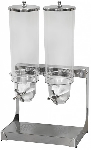 Диспенсер для мюсли на две емкости Ergo FQ-MC-146 предложит гостям различные вкусы этого блюда. Вы можете установить оборудование в обеденном зале (если работаете по системе самообслуживания) или на кухне (тогда повара будут высыпать мюсли по мере необходимости).