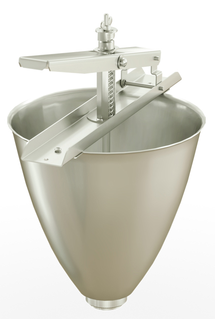 Конусовидная форма бункера дозатора позволяет тесту беспрепятственно стекать в зону формовочной головки