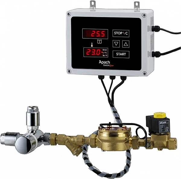 Дозатор воды Apach Bakery Line DOX 25 используется на предприятиях пищевой промышленности и общественного питания в пекарнях и кондитерских для регулировки количества воды, поступающей в дежу тестомеса.