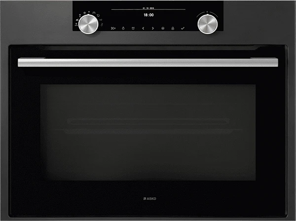 Духовой шкаф ASKO OCM8487A высота прибора составляет всего 45 см. Зато он предлагает функцию не только традиционной духовки, но и СВЧ-печи. Технология Stirrer позволяет микроволнам многократно отражаться от поверхности, благодаря чему они проникают в пищу со всех сторон. Так воздействие происходит равномерно, а поворотный столик становится не нужен.
