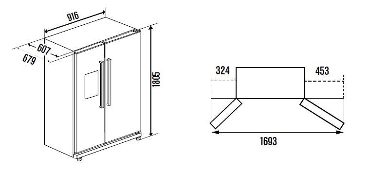 Размеры прибора, включая ручки (Ш х В х Г): 916 х 1805 х 720 мм