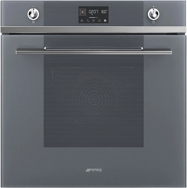 Духовой шкаф электрический SMEG SO6102TS имеет 5 уровней приготовления и объем в 68 л, что позволяет готовить крупные куски мяса или птицу целиком, а благодаря наличию турбо режима возможно приготовление на нескольких противнях одновременно. Электронная панель управления снабжена поворотными переключателями, кнопками и дисплеем, поэтому выбрать нужную опцию будет достаточно просто. Защитная блокировка от детей и автоматическое отключение при открытой дверце сделают использование более безопасным.