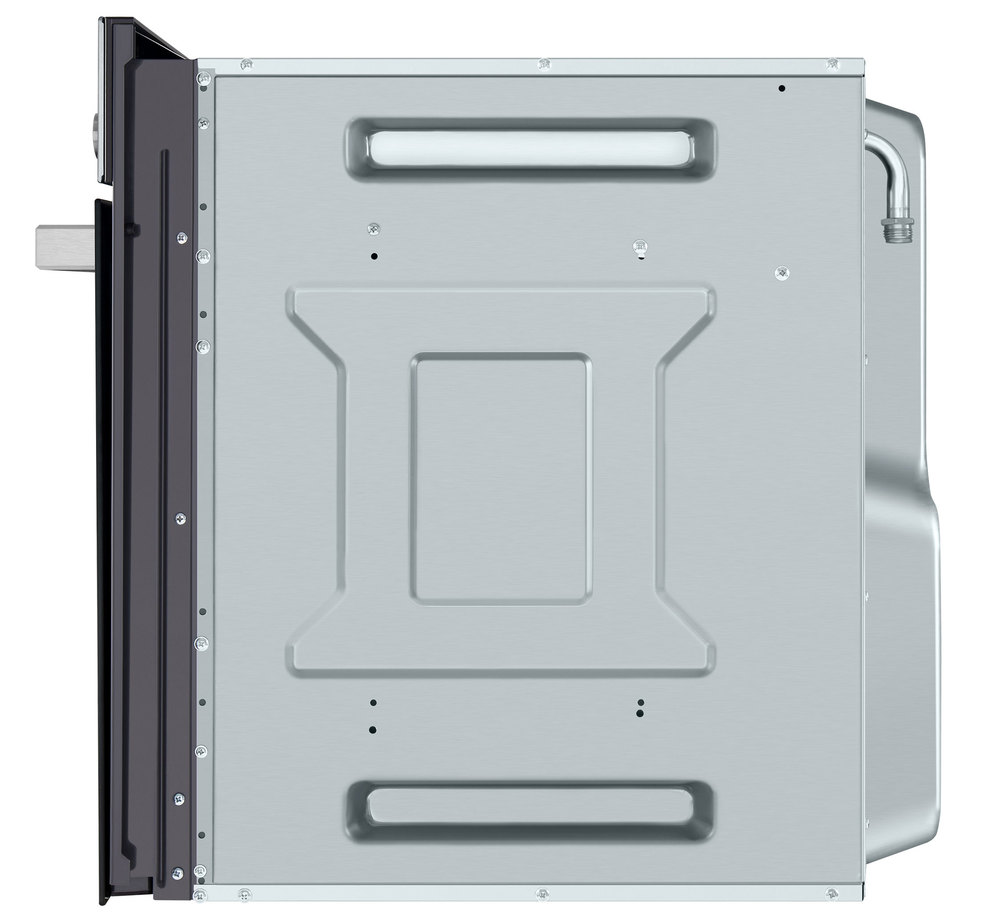 Фронтальная панель духовки выполнена из высококачественного жаропрочного тонированного стекла черного цвета и вставок из нержавеющей стали. Ручка дверцы, сделанная из матированной металла, не нагревается в процессе готовки.