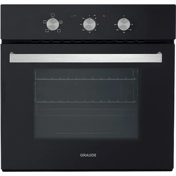 Духовой шкаф Graude BE 60.0 S выполнен в сочетании черного стеклянного фронта ClearView с фурнитурой цвета «Алюминий» и прекрасно дополнит любую кухню.