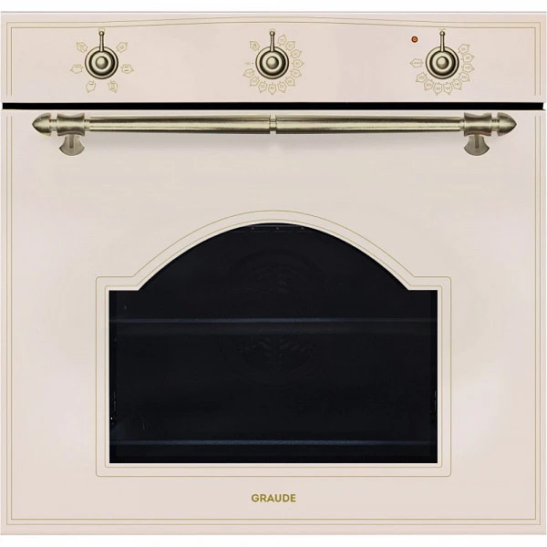 Духовой шкаф Graude BK 60.2 EL объемом 73 л выполнен в кремовом оттенке «слоновая кость». Изящная форма смотрового окошка и латунные детали подчеркивают стиль бытовой техники, который идеально подойдет для кухонь в дизайне прованс, романтизм, шебби-шик, ретро и эклектика.